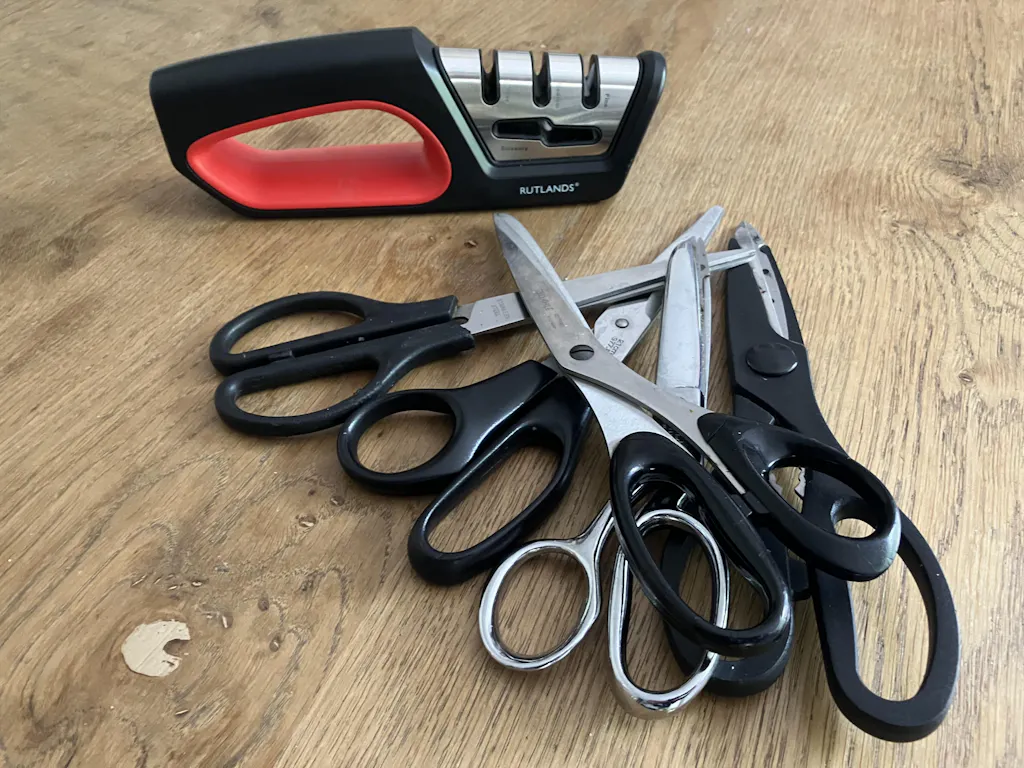 - Put a razor sharp edge on kitchen, outdoor and serrated knives and scissors